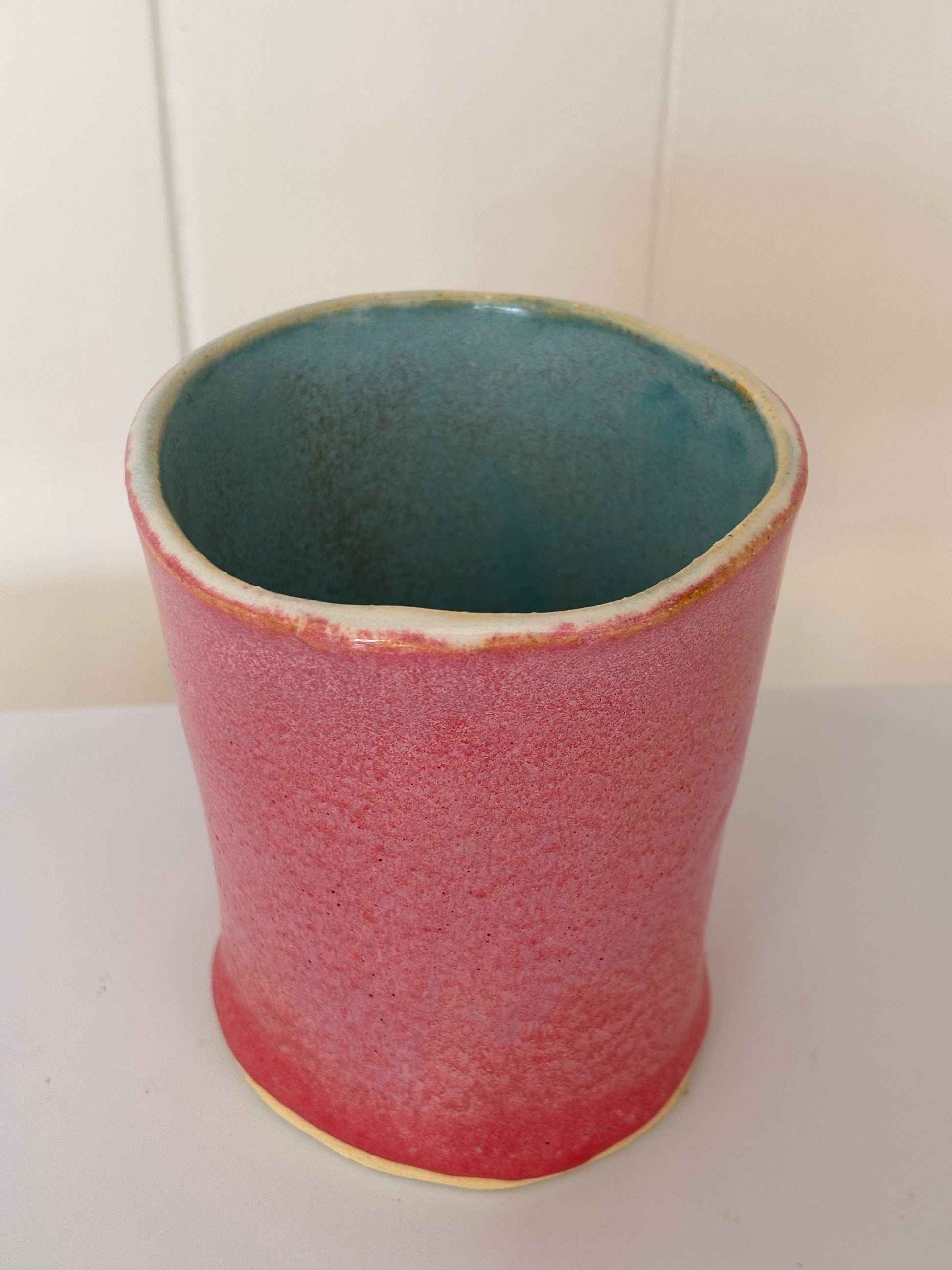 These cute large cups can be used for anything from makeup brushes to beverages. A nice bright colourway with a pale blue inside.