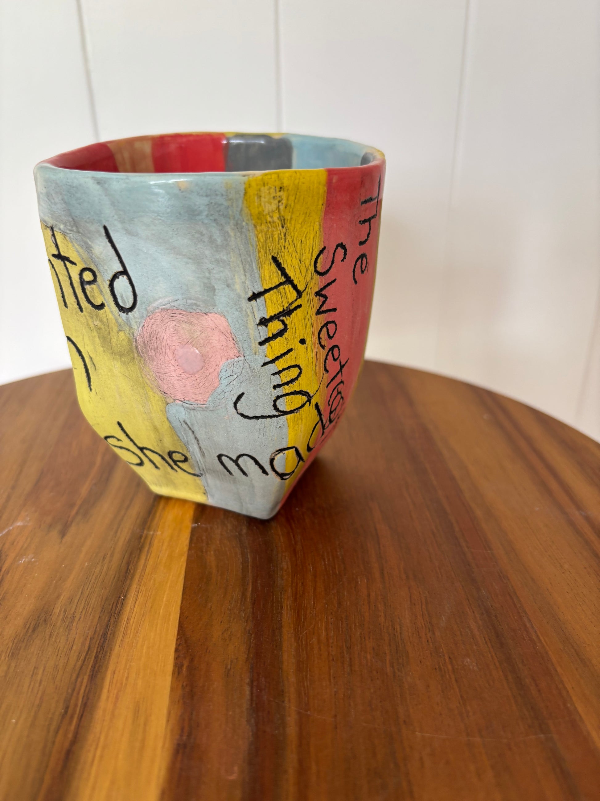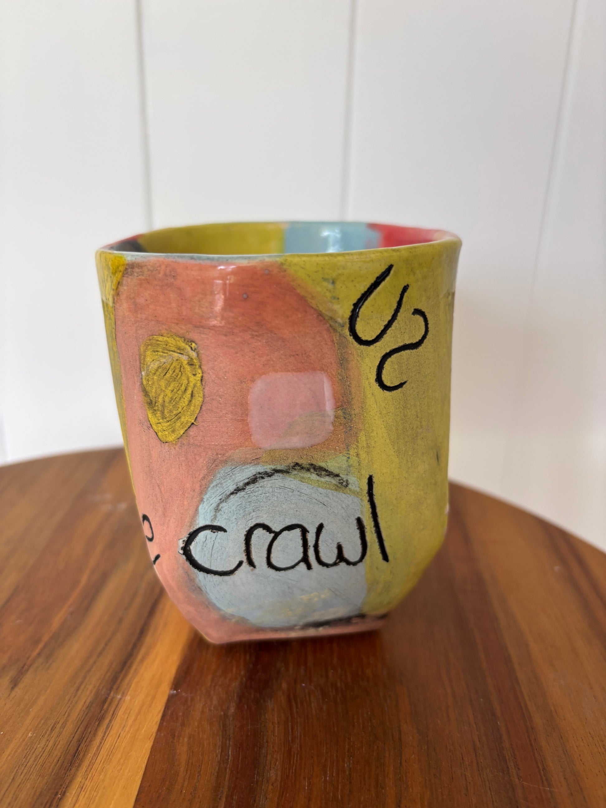 .... but she made me crawl mug. Smokey pastel hues with a glazed interior.