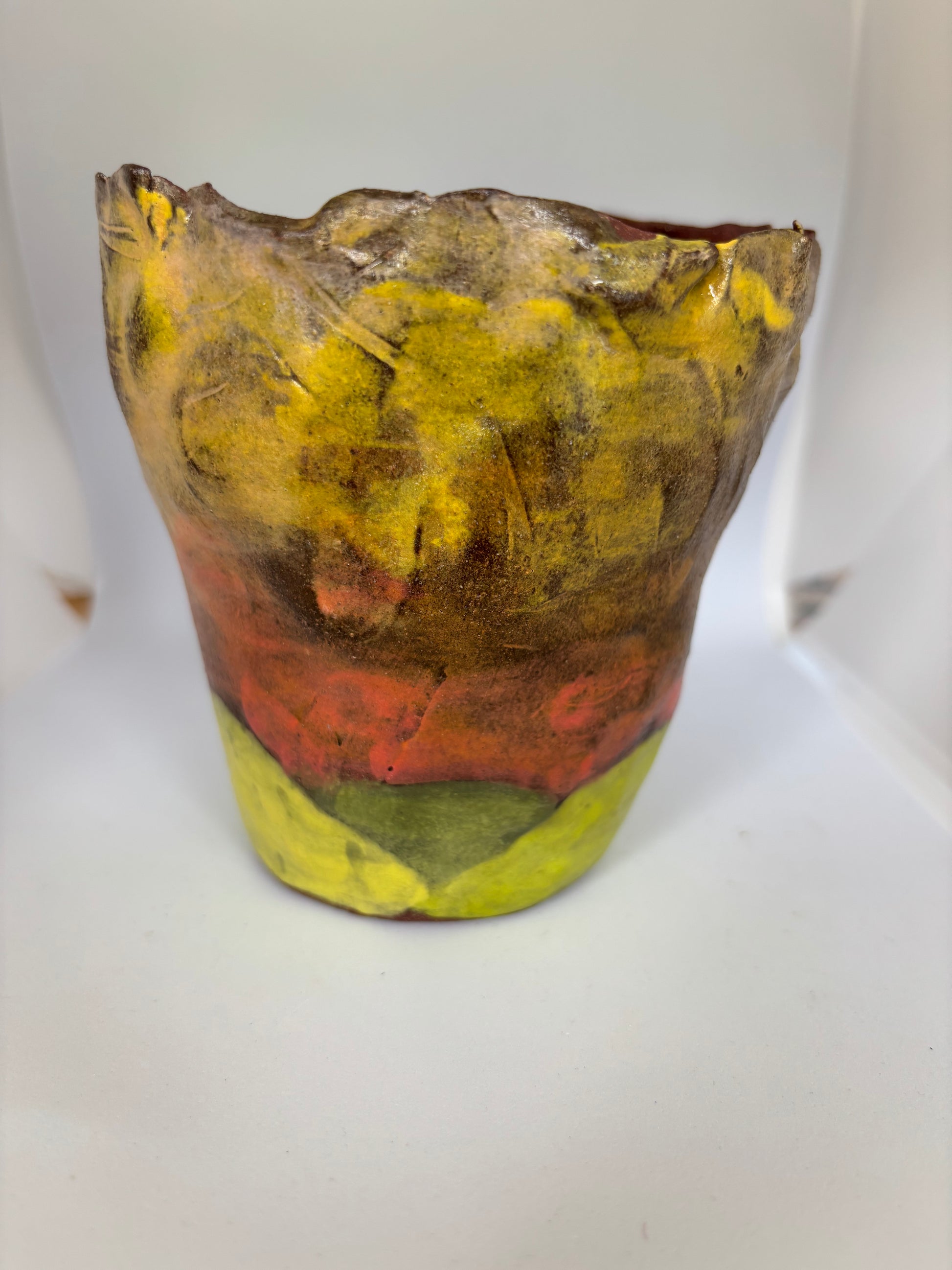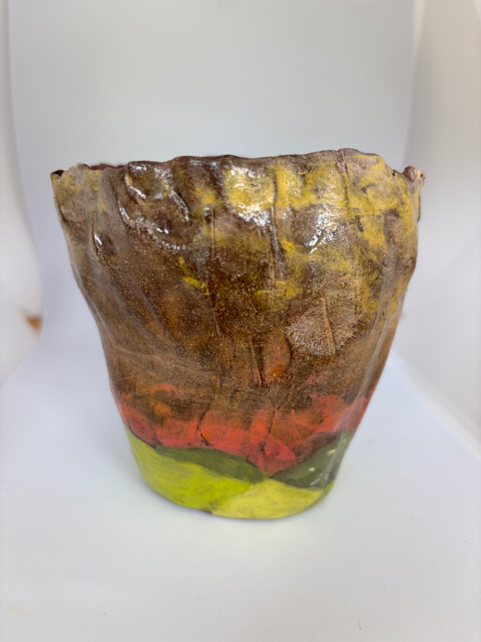 This piece was inspired by a road trip to Ruapuke through the green rolling hills with a splendid yellow sunset over the horizon.